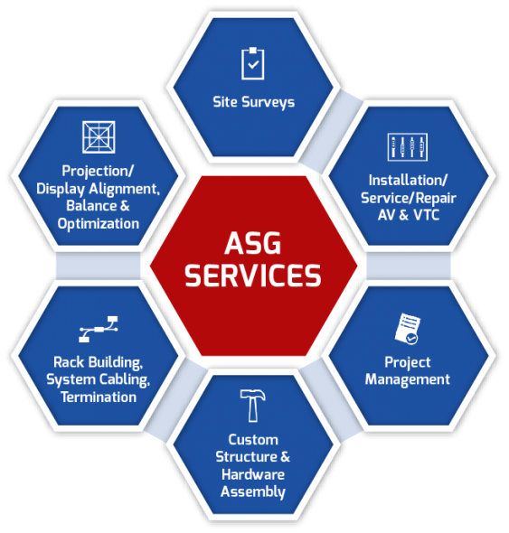 Applied Services Group provides specialized technical services to AV Integrators Worldwide. Our team can help with installation, service/repair, site surveys, project management, audio integration, custom structure and hardware assembly, rack building, system cabling & more.