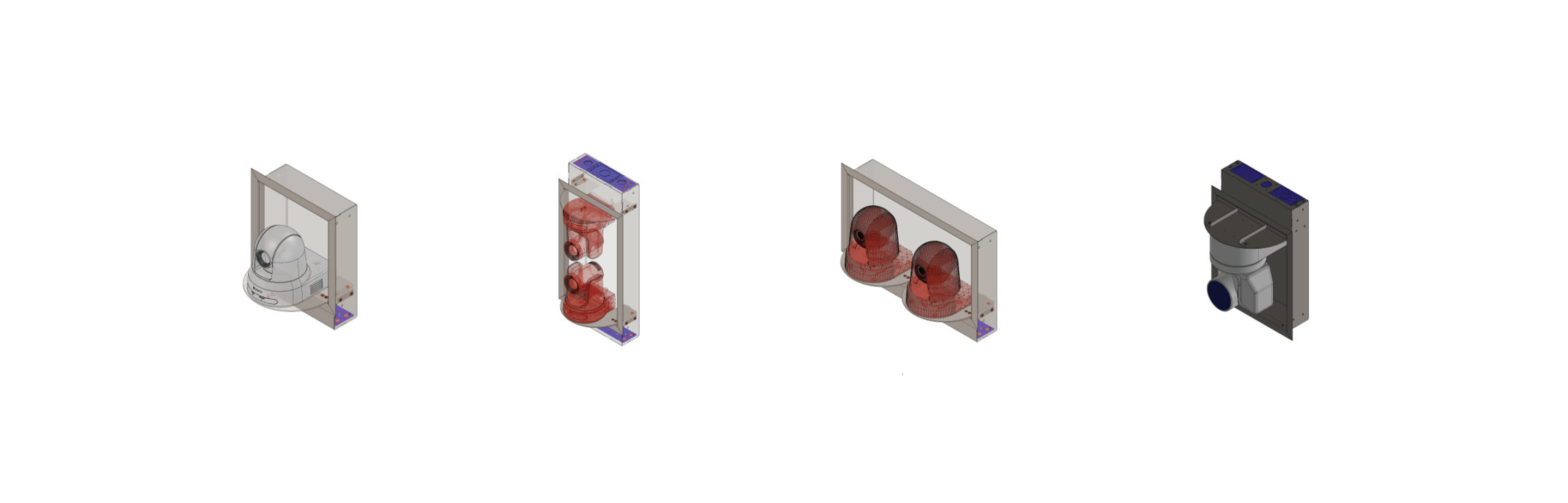 The recess camera box holds a single PTZ cameras to be mounted with a reduced depth and clean appearance.