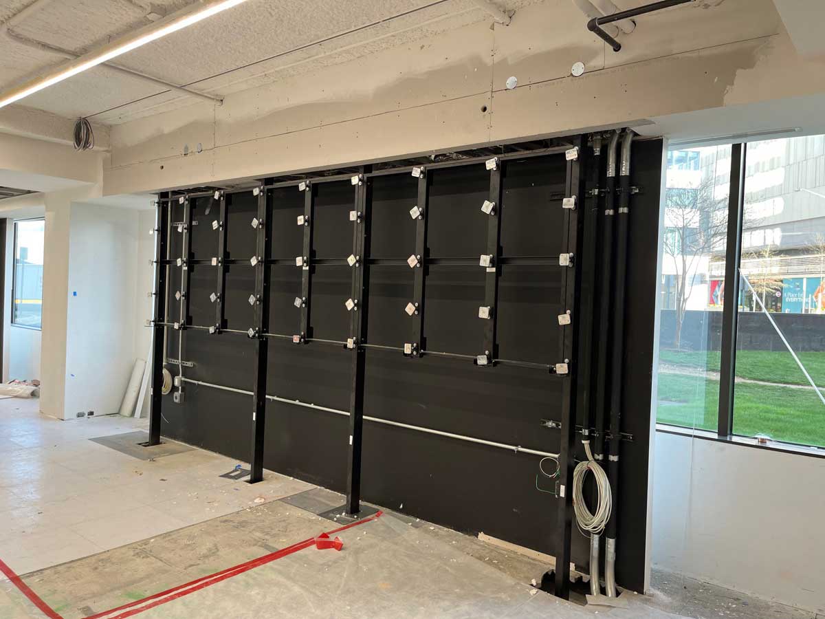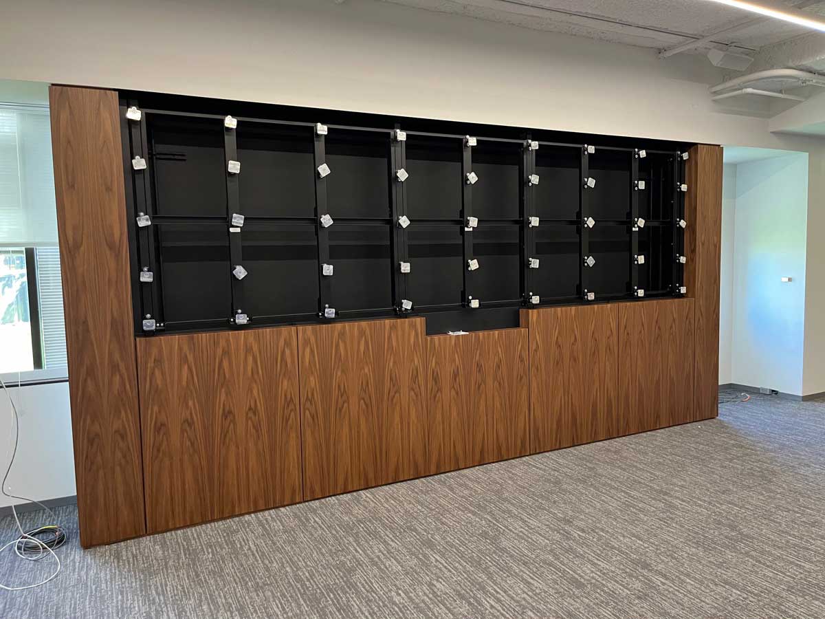 rp Visual Solutions partnered with Washington Pro and STC LED to create two separate custom structures in a corporate multipurpose room for a defense contractor client.