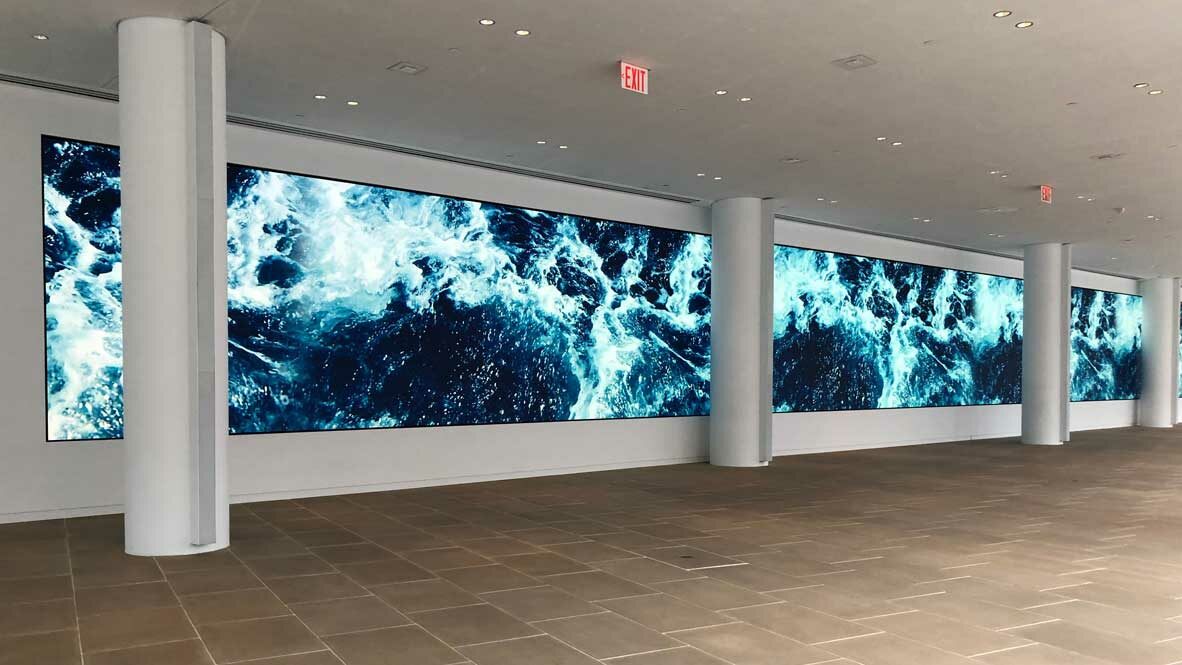 For this project, rp Visual Solutions (RPV) teamed up with LED Manufacturer Christie Digital and AV Integrator Video Corporation of America (VCA) to engineer and fabricate direct view LED Display Mount Structures for the IAC Corporate Lobby in New York, NY. The space includes two LED walls, with the first wall at 117′ wide, and the second wall at 20′ wide. Both use 1.4mm Christie Velvet CorePlus tiles and when combined equal over 52 million pixels.