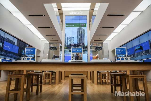 Since 2010 rp Visual Solutions (RPV) has been serving Microsoft’s Retail Experience Centers worldwide. We have helped Microsoft create a unique customer experience using flat panel matrix arrays in all their locations, and have deployed LED videowalls in their flagship locations in New York and Sydney, Australia. The typical store model includes dual flanking Ribbon Walls running the length of the store using a number of 55″ flat panels depending on the layout of the store.