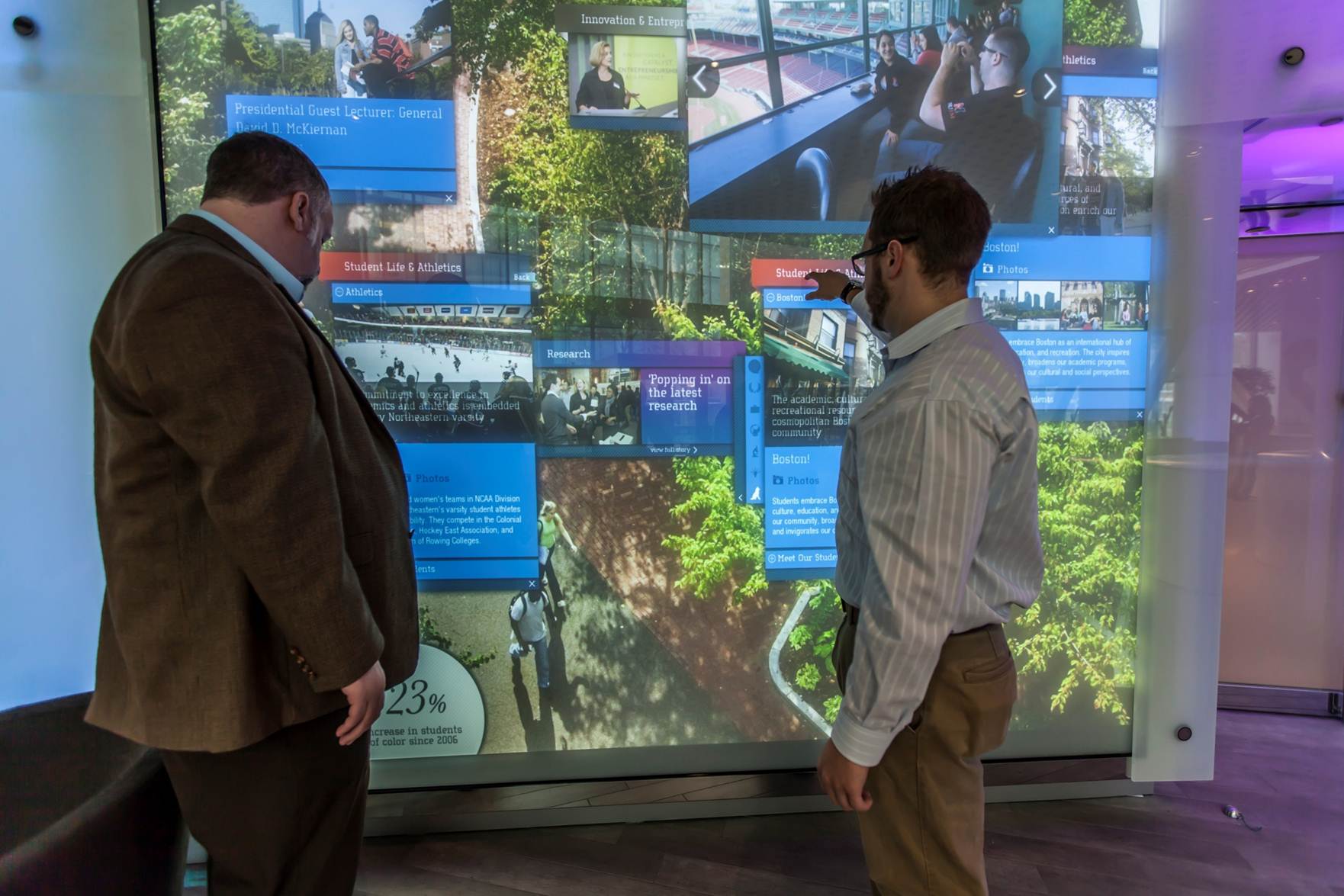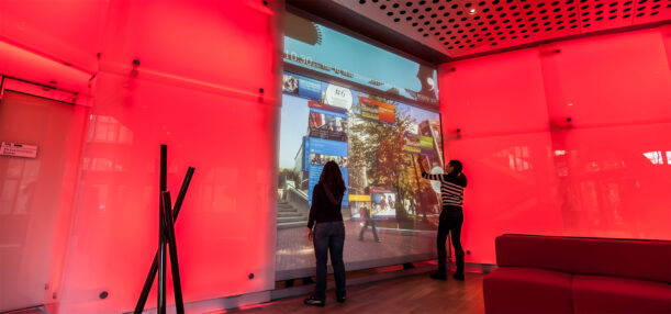 Interactive displays allow the user to physically touch the display, acting as a mouse, use gesture, or near touch. RP Visual Solutions enables customization of any screen, panel display or matrix displays (up to 480″ diagonal) to include interactivity for mobile marketing or digital signage. Dynamic Digital Signage content allows users interaction via touch or near touch, where an interactive overlay connects to either the panel or screen.