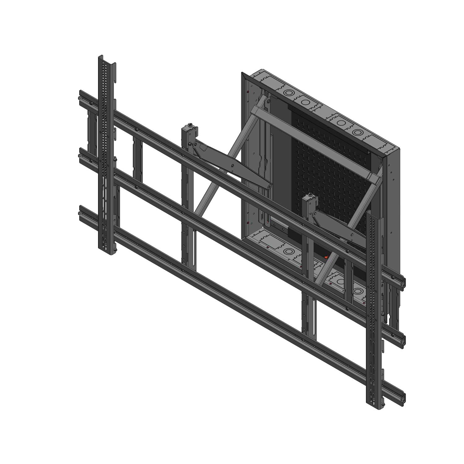 The Wallmate 32MAXB6 with the Large Display Universal mount, UNV-158, is a double stud bay system designed to hold almost every flat panel display above 85″, while maintaining a low profile from the wall and position adjustment.