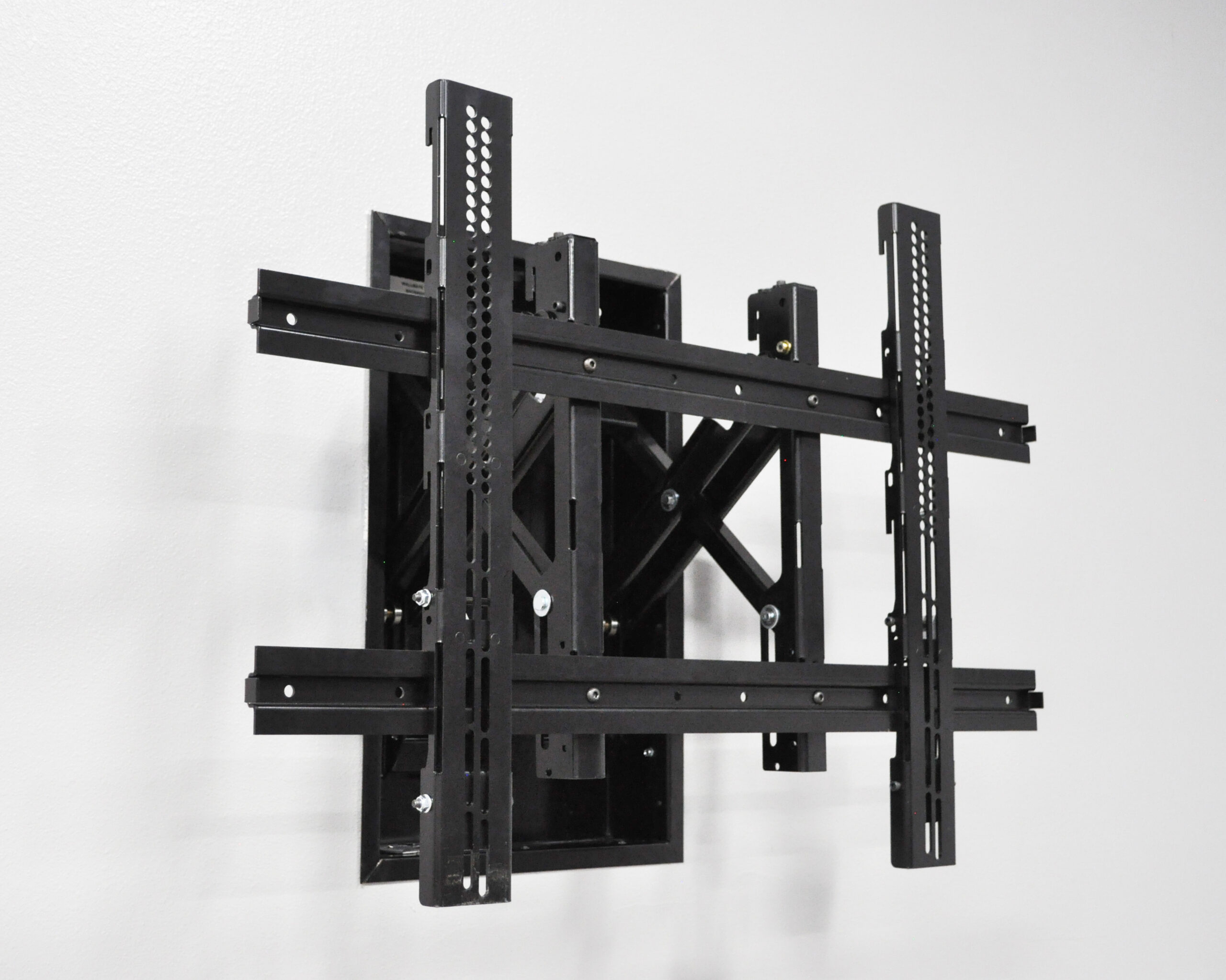 Wallmate 16B integrates the back box, display mounting plate, and AV device mounting into one complete system while maintaining a thin display-to-wall profile.