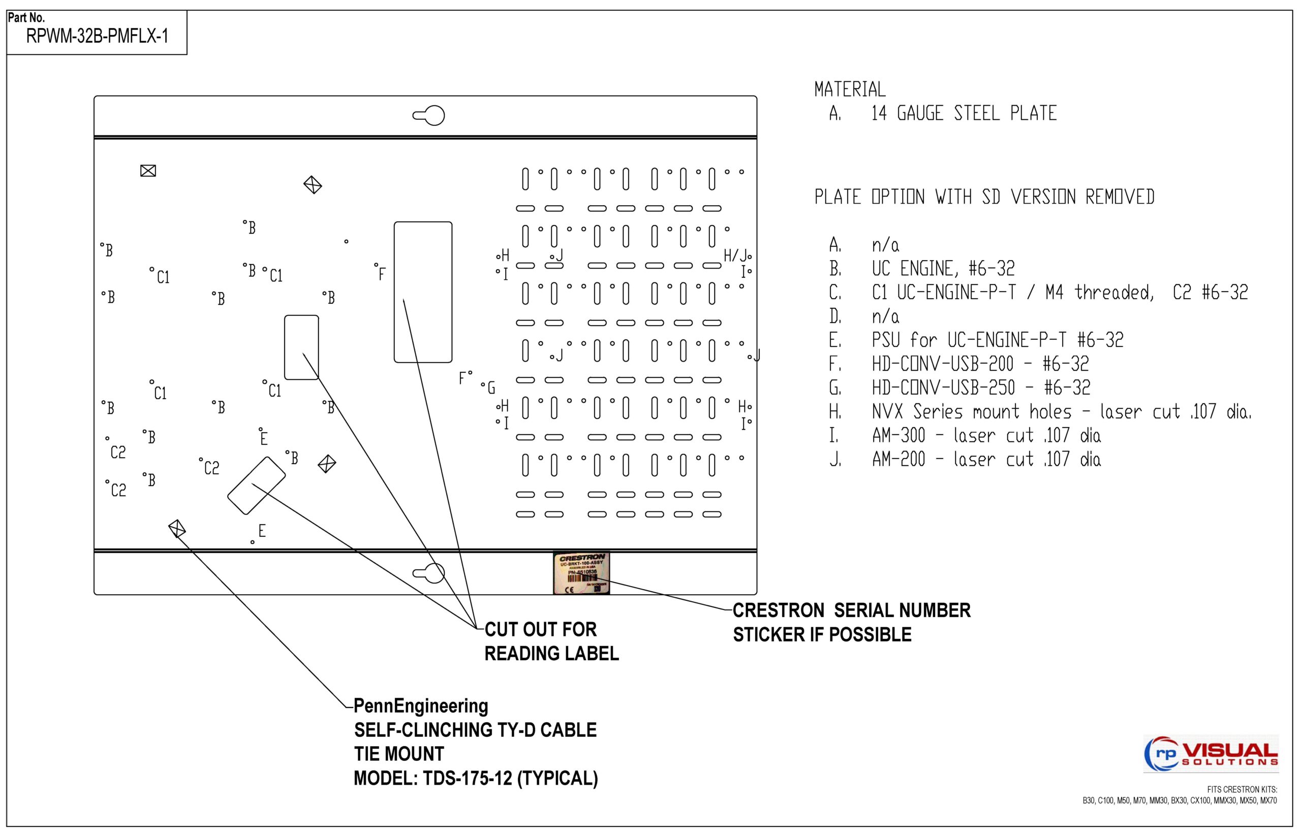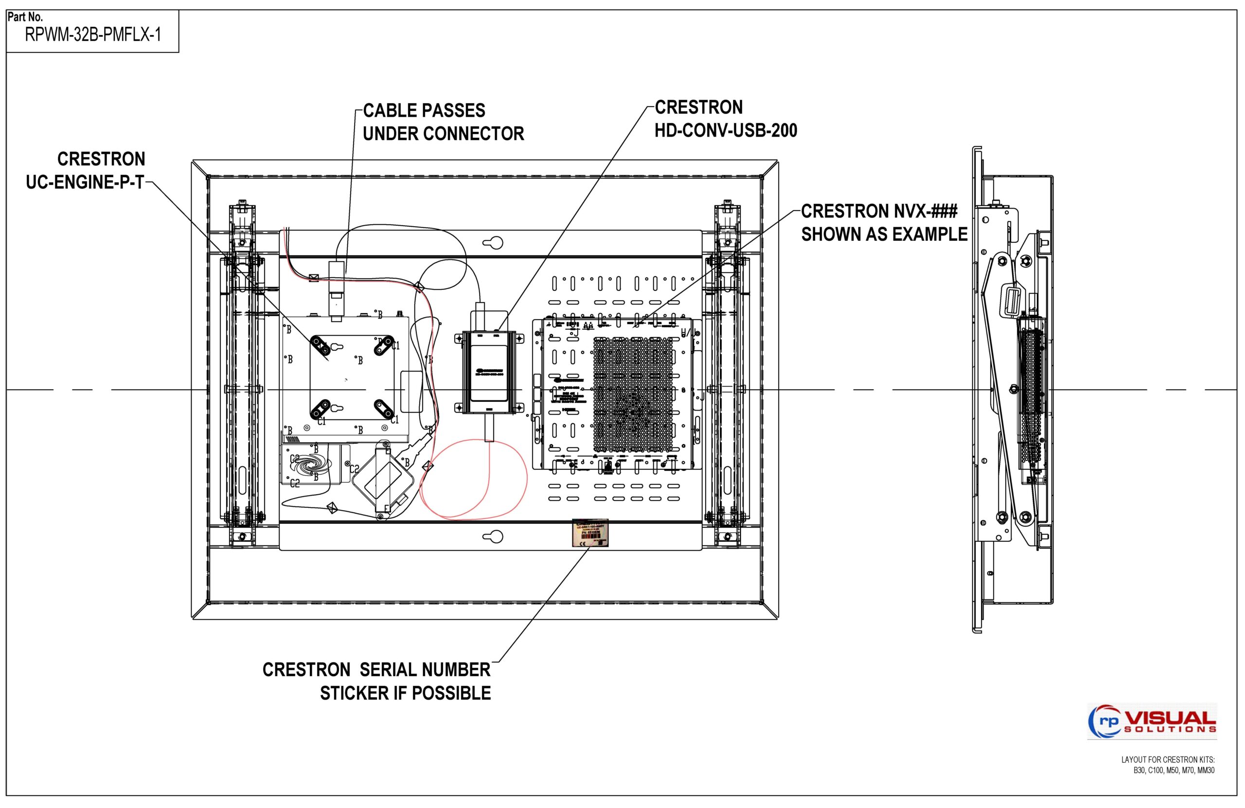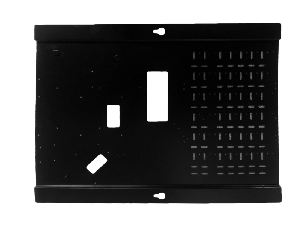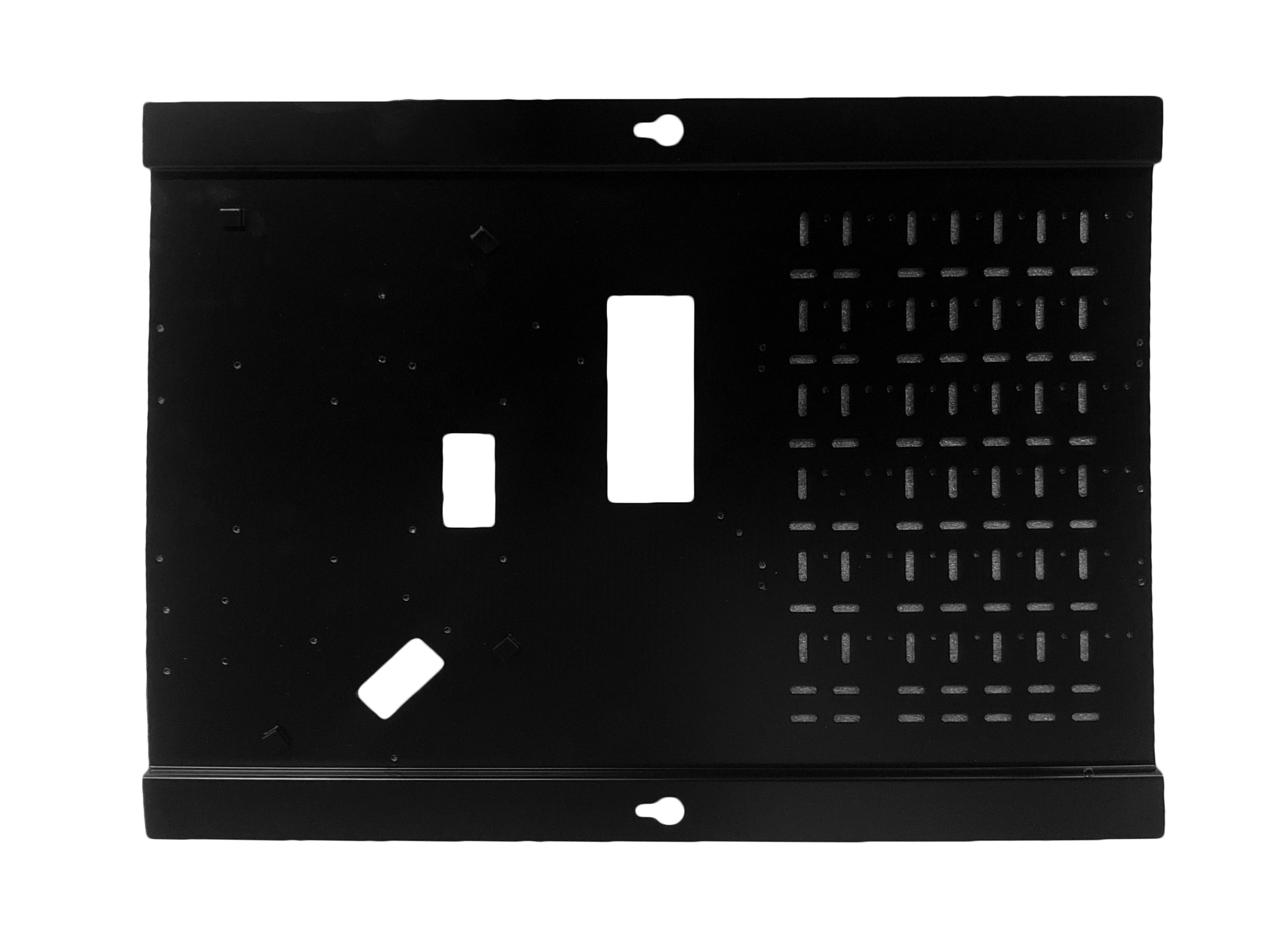 The Wallmate Crestron FLEX device plate replaces the standard Wallmate Systems peripheral plate to seamlessly support additional FLEX devices while maintaining Crestron’s warranty. We designed the FLEX plate to easily mount the FLEX system components using precisely placed holes on the FLEX plate. Cable tie standoffs are included on the FLEX plate for easy installation and to comply with Crestron-specified cable radius. Our solution ensures reliability and repeatable, efficient installation.